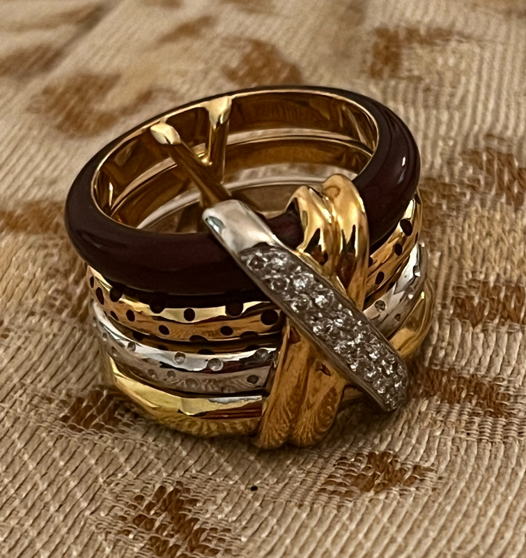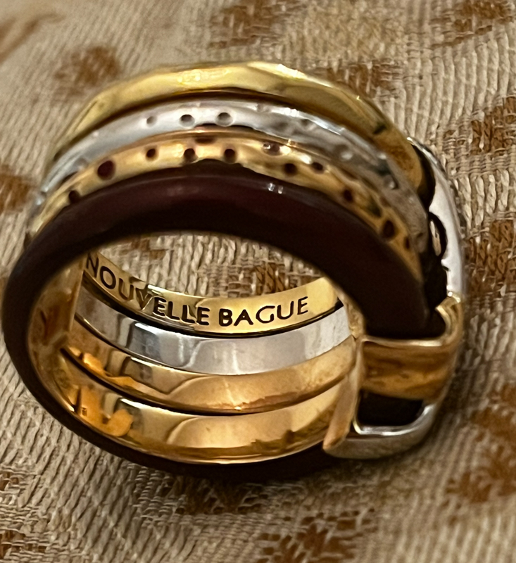 - Nouvelle Bague 18k enamel & Diamond stack band