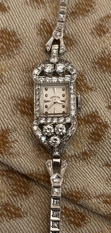 - Vintage Ladies white gold Hamilton Diamond watch bracelet