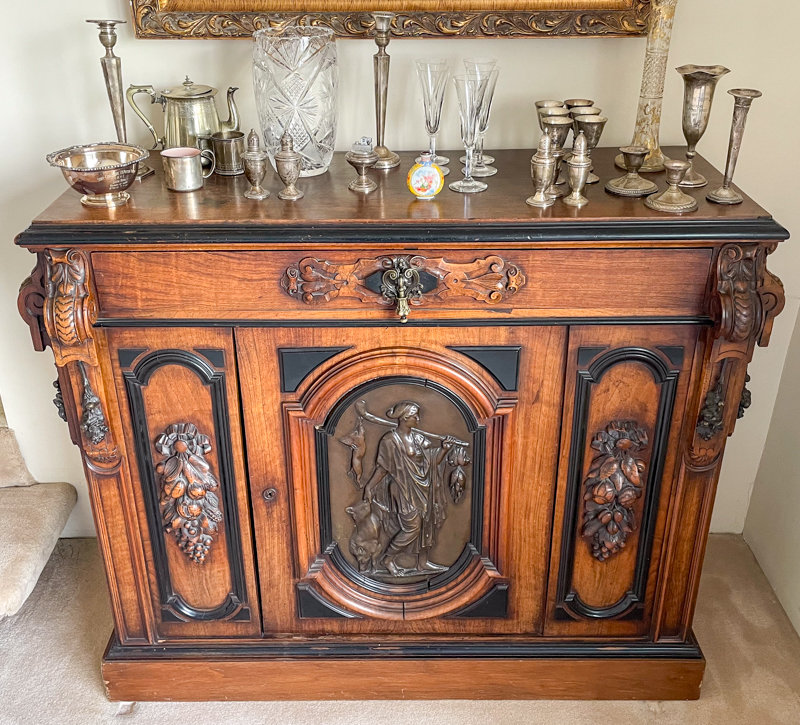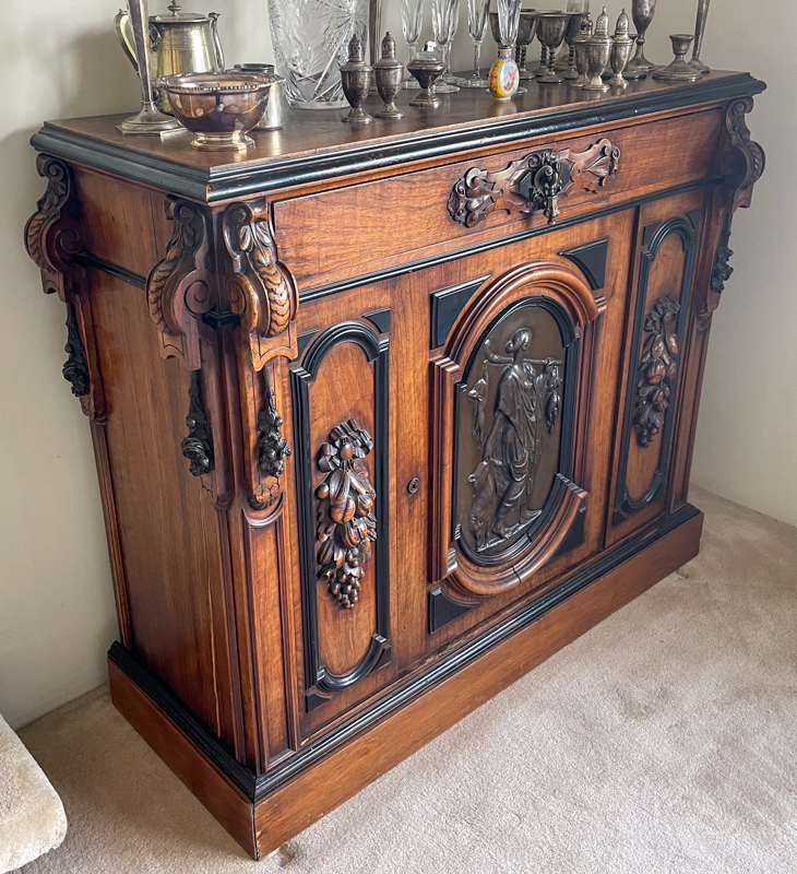 - Beautiful Antique French bronze accented buffet depicting Diana the Huntress