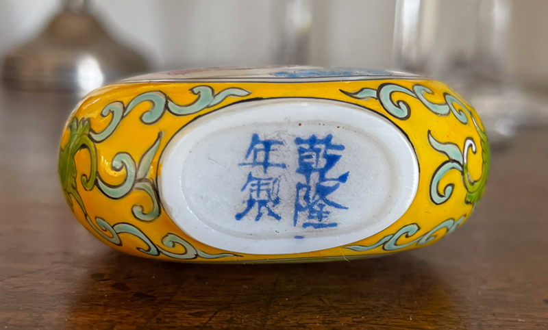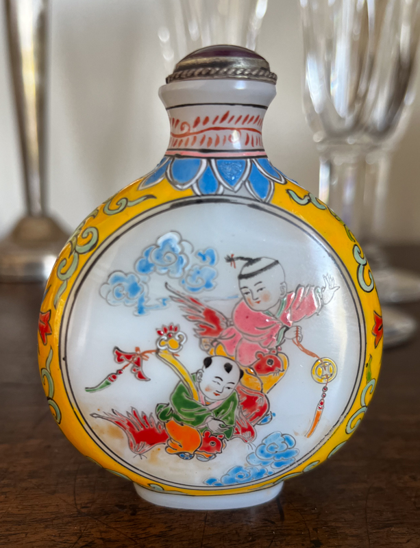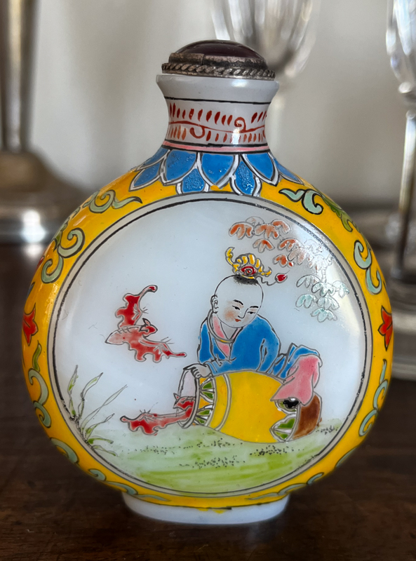 - Peking glass Chinese hand painted snuff bottle c. 1930’s