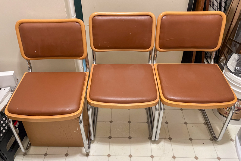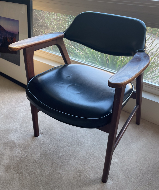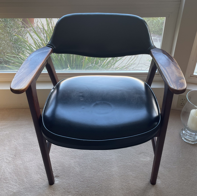- Mid-century modern black leather studded arm chair by Paoli chair company