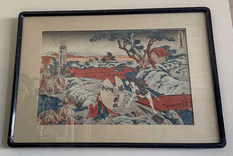 - Hokusai “The Chushingura” series Act V Japanese framed woodblock print