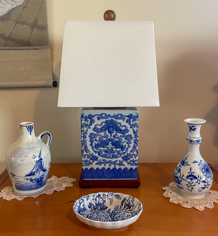 - Ralph Lauren Peony flower blue porcelain table lamps