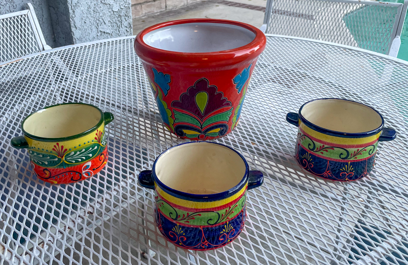 - Andrea Sadek three-piece nesting butterfly hand painted embossed dish set